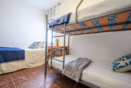 Comfortable and rustic furnishings: living/dining room with open-hearth fireplace (only for decoration), dining table, digital TV and international TV channels. Exit to the patio. 1 double bedroom with 1 french bed (135 cm, length 190 cm). 1 double bedroom with 1 bed (90 cm, length 190 cm), 1 x 2 bunk beds (90 cm, length 190 cm). Kitchen (4 hot plates, oven, dishwasher, toaster, microwave, freezer, electric coffee machine). Shower/WC. Air-conditioning, forced-air heating. Terrace furniture, barbecue (portable), deck chairs. View of the swimming pool and the garden. Facilities: washing machine, iron, mosquito net. Internet (WiFi, free). Parking at the house. Suitable for families. Maximum 2 pets/ dogs allowed. HUTTE000346 // Reg. Nr.: ESFCTU0000430190003749240000000000000000HUTTE-0003468