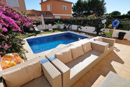 Urb. Tres Cales 4 km from L'Ametlla de Mar: Cosy, comfortable villa "Florencia". Outside the resort, 4.8 km from the centre of L'Ametlla de Mar, in a quiet, sunny position, 1.1 km from the sea, 1.1 km from the beach. Private: property 300 m2, swimming pool (01.04.-31.10.). Patio, garden furniture, barbecue, parking at the house, public parking on the road. Grocery, supermarket, restaurant, bar 700 m, railway station 4.8 km, sandy beach 1.1 km. Nearby attractions: Parque Portaventura 48 km, parque Aquopolis 51 km, parque natura del Delta del Ebro 35 km, Tarragona 57 km, Reus 48 km, Barcelona 153 km. Please note: car recommended. Groups of teenagers on request only.