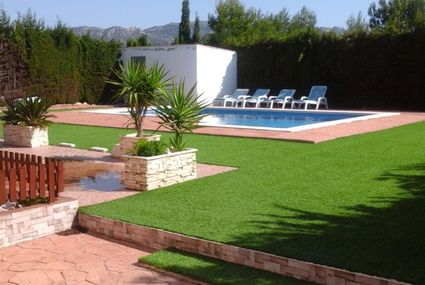 Urb. Tres Cales 4 km from L'Ametlla de Mar: Synthetic grass beautiful, cosy house "Villa Catalunya". Outside the resort, 4.8 km from the centre of L'Ametlla de Mar, in a quiet, sunny position, 1.1 km from the sea, 1.1 km from the beach. Private: property (fenced), swimming pool angular (01.04.-31.10.). Patio, garden furniture, barbecue. In the house: fitness room. Parking at the house, public parking on the road. Grocery, supermarket, restaurant, bar 700 m, railway station 4.8 km, sandy beach 1.1 km. Nearby attractions: Parque Portaventura 48 km, parque Aquopolis 51 km, parque natura del Delta del Ebro 35 km, Tarragona 57 km, Reus 48 km, Barcelona 153 km. Please note: car recommended. Groups of teenagers on request only.