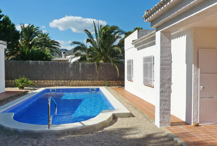 Urb Calafat 8 km from L'Ametlla de Mar: Simple, comfortable villa "Llevant". In a quiet position, from the sea, 300 m from the beach. Private: property 700 m2, swimming pool (10 x 5 m, depth 80 - 190 cm, seasonal availability: 01.Jun. - 31.Oct.) with internal staircase. Outdoor shower, barbecue, pool maintenance by the owner/gardener. Public parking on the road. Restaurant 1.1 km, bar 1.1 km, bus stop "l'Ametlla de Mar" 6.6 km, railway station 6.6 km. Sports harbour 300 m. Nearby attractions: Parque Portaventura 48 km, parque Aquopolis 51 km, parque natura del Delta del Ebro 35 km, Tarragona 57 km, Reus 48 km, Barcelona 153 km. Groups of teenagers on request only.Availability
