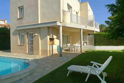 House situated on the seaside promenade, in the first row from the sea. Modern, beautiful, cosy terraced house "Angels", 3 storeys. In the resort 1 km from the centre of l'Ampolla, in a sunny position, 50 m from the sea, 250 m from the beach, road to cross. Private: garden (fenced) with lawn 45 m2, swimming pool angular (4 x 8 m, seasonal availability: 01.Jan. - 31.Dec.) with internal staircase. Outdoor shower, patio, pergola (10 m2), garden furniture, barbecue, parking (limited number of spaces) on the premises, public parking on the road. Supermarket 1 km, restaurant 50 m, railway station "l'ampolla" 1.5 km. Nearby attractions: Parque Natural del Ebro 5 km, parque Portaventura 65 km, Pitch & Putt 2 km.Availability