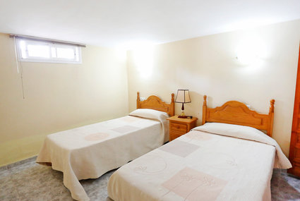 Comfortable and cosy furnishings: living/dining room with dining table, TV, hi-fi system, DVD and fan. Exit to the veranda. 1 room with 1 french bed (150 cm, length 190 cm), fan. 2 rooms, each room with 2 beds (90 cm, length 190 cm). Kitchen (oven, dishwasher, 4 ceramic glass hob hotplates, microwave). Bath/WC, shower/WC, double hand-basin with corner bath. Heating. On the lower ground floor: living/dining room with dining table and TV. 1 room with 1 bed (150 cm, length 190 cm). 2 rooms (90 cm, length 190 cm). 2 rooms, each room with 2 beds (90 cm, length 190 cm). Bath/WC. Heating. Patio. Terrace furniture, barbecue, covered balcony. Facilities: washing machine. Internet (Dial up/ISDN, extra). Reserved parking (fenced 2 cars). Please note: suitable for families. 2 pets/ dogs allowed. TV only ES. HUTT007585