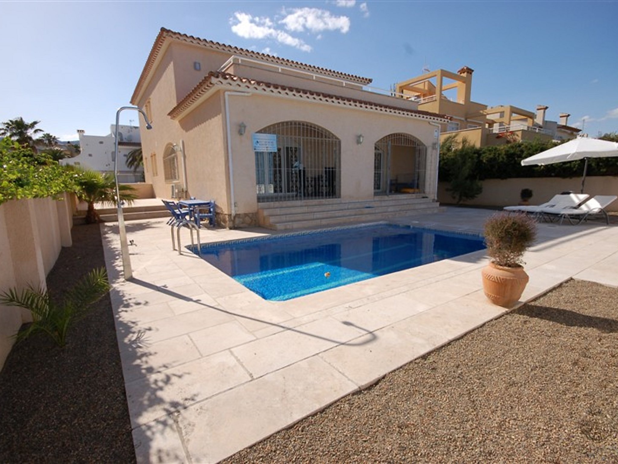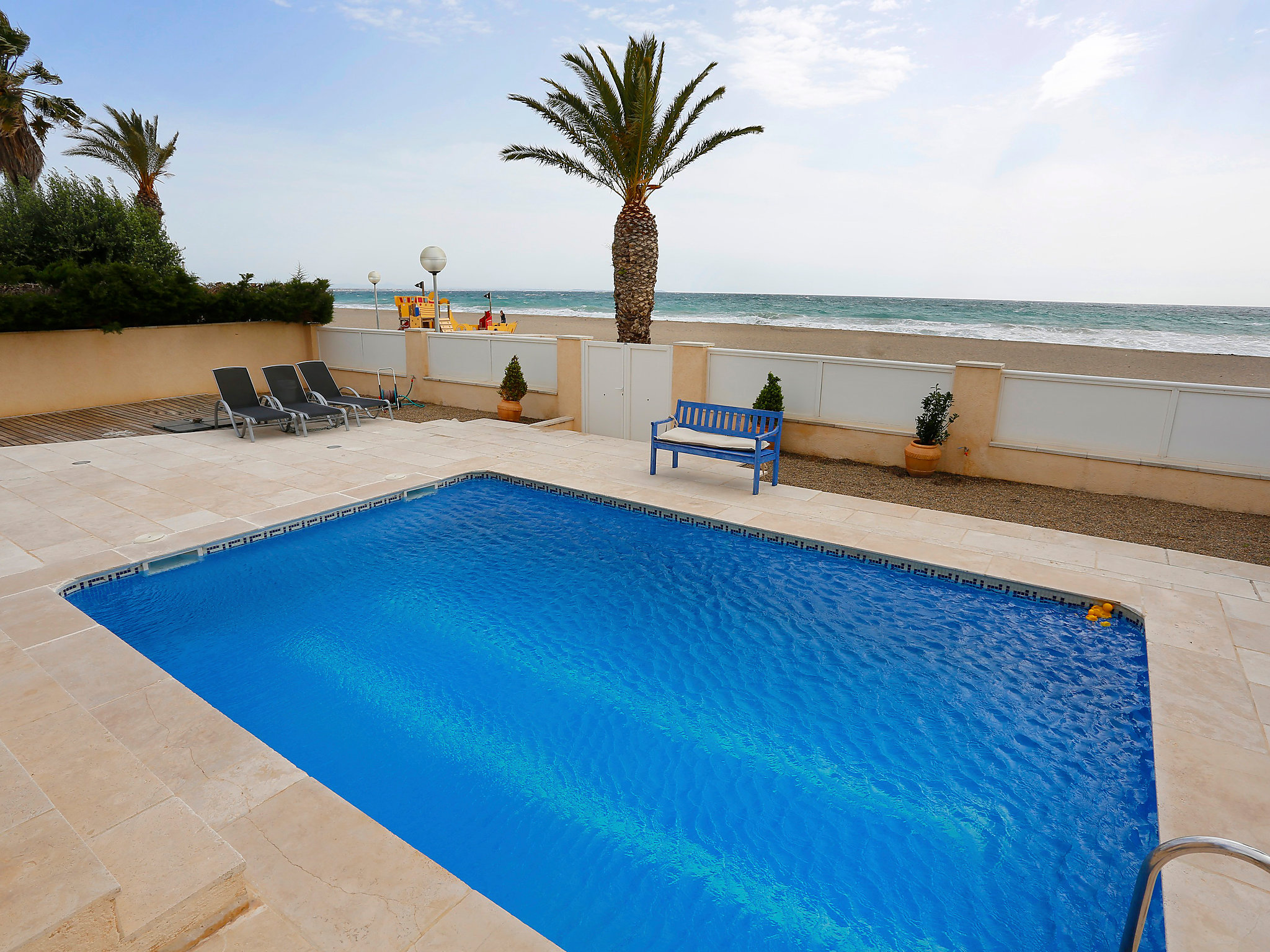 Urb. Pino Alto 1 km from Hospitalet de l'Infant: Very beautiful, cosy, very comfortable villa "Malibu". At the seaside, direct access to the beach. Private: property (fenced), swimming pool angular (7 x 4 m, 01.01.-31.12.). Outdoor shower, pergola, terrace, garden furniture. Shop, supermarket 500 m, restaurant 150 m, railway station "Hospitalet de l'Infant" 2 km, sandy beach "pino alto" 5 m. Sports harbour 1 km, golf course 7 km. Nearby attractions: Parque Portaventura 28 km, parque acuático Aquopolis 31 km, parque Natural del Delta del Ebro 53 km, Tarragona 37 km, Reus 30 km, Barcelona 132 km. Groups of teenagers on request only.