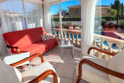 Urb Costa Zefir: Beautiful, comfortable villa "Pasja". In the resort 1 km from the centre of Miami-Platja, in a sunny position, 1.2 km from the sea, 1.2 km from the beach. Private: property 620 m2 (fenced), swimming pool angular (10 x 4 m, depth 80 - 190 cm, seasonal availability: 01.Jan. - 31.Dec.) with internal staircase. Pergola, garden furniture, pool maintenance by the owner/gardener. Parking at the house. Supermarket 350 m, restaurant 1.3 km, bakery 350 m, bus stop 1.3 km, railway station "Hospitalet" 3 km, swimming bay 1.9 km. Golf course (13 hole) 3 km. Nearby attractions: parque Portaventura 28 km, parque acuático Aquopolis 31 km, parque Natural del Delta del Ebro 53 km, Tarragona 37 km, Reus 30 km, Barcelona 132 km. Please note: car recommended. Groups of teenagers on request only.Availability