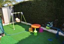 It has direct access to the terrace below, porch type. It is fully equipped with garden furniture, sun loungers, umbrellas and barbecue. Beautiful fenced private pool and a nice waterfall.