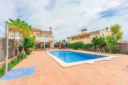 Terraced house, 2 storeys. In a quiet position residential area (villas), 1.5 km from the sea, 1.5 km from the beach. Private: property (fenced), swimming pool angular (8 x 4 m, depth 100 - 200 cm, seasonal availability: 01.Apr. - 30.Sep.). Patio, pergola, garden furniture, barbecue, parking, public parking on the road. Supermarket 350 m, restaurant 850 m, bakery 350 m, bus stop "Sant Vicenc de Calders" 5 km, railway station "Sant vicenc de Calders" 5 km. Nearby attractions: Tarragona 24 km, Port Aventura 35 km, Sitges 35 km, Barcelona 71 km. The owner does not accept any youth groups. Neighbourhood highly sensitive to noise. Quietness and good behaviour expected.Availability