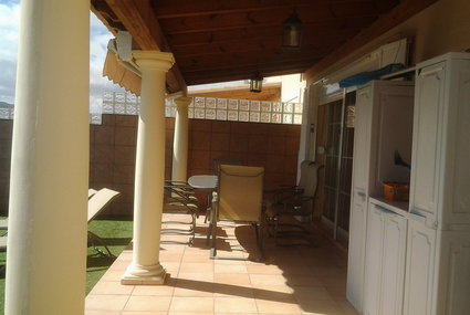New, large, beautiful terraced house "Villa Suite Golf Caleta 3", built in 2008. Washing machine (private use). Access & Parking: parking by the house on the road. All-season motor access to the house. Car recommended. Situation: above Caleta de Fuste, quiet, elevated, sunny position. View from the apartment of the sea, the mountains, the garden, the resort and the countryside. Surroundings of the house: garden (private use, 70 m2), swimming pool (private use, length 7 m x width 3 m, open from 01.01. untill 31 .12.), outside shower (private use), barbecue (private use). Facilities and distances: shop 500 m, grocers 500 m, supermarket 500 m, restaurant 500 m, sandy beach 800 m, golf course 1.5 km, children's playground 500 m, m. Please note, nearby is an ein airport/airfield in 8 km.
