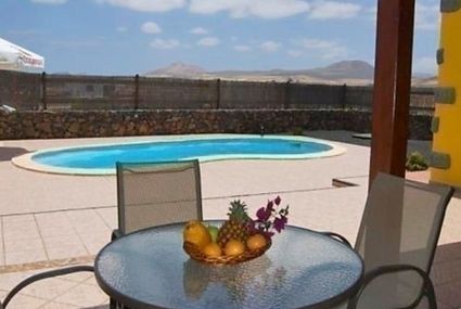 Modern, comfortable chalet "Villa Los Morritos". Access & Parking: individual garage. All-season motor access to the house. Car recommended. Situation: on the outskirts, above Lajares, quiet, sunny position. View from the apartment of the countryside. Surroundings of the house: grounds (private use, 1'000 m2), swimming pool (private use), outside shower (private use), barbecue (private use). Facilities and distances: shop 500 m, grocers 500 m, supermarket 500 m, restaurant 500 m, sandy beach 5 km, children's playground 500 m, m. Please note, nearby is an ein airport/airfield in 35 km.