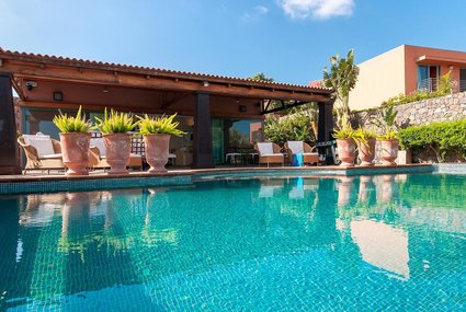 New, large, modern villa "La Salvia". House Equipment: whirlpool, central heating system, air conditioning, washing machine (private use), tumble dryer (private use). Access & Parking: parking by the house, private parking. All-season motor access to the house. Car recommended. Situation: in the centre of Salobre Golf Resort, in the district of Maspalomas, above Meloneras, quiet, elevated, sunny position. View from the apartment of the mountains and the garden. Surroundings of the house: grounds (private use, 1'000 m2, fenced), garden (private use), lawn (private use), swimming pool (private use, heated, length 8 m x width 2 m, open from 01.01. untill 31 .12.), paddling pool (private use), outside shower (private use), barbecue (private use). Facilities and distances: shop 200 m, grocers 200 m, supermarket 3 km, restaurant 200 m, sandy beach 3 km, golf course 50 m. Please note, nearby is a motorway in 1 km, main road in 50 m and ein airport/airfield in 25 km. Swimming pool heating: extra (50€/day, to be requested in the booking and to be paid on spot).