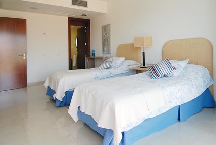 New, large, modern villa "Salobre Villa 3". House Equipment: air conditioning, washing machine (private use), tumble dryer (private use). Access & Parking: parking by the house, private parking, individual garage. All-season motor access to the house. Car recommended. Situation: in the centre of Salobre Golf Resort, in the district of Maspalomas, above Meloneras 7km, quiet, elevated, sunny position in a residential area. View from the apartment of the mountains and the resort. Surroundings of the house: grounds (private use, 360 m2, fenced), garden (private use), lawn (private use), swimming pool (private use, heated, length 8 m x width 3 m, open from 01.01. untill 31 .12.), barbecue (private use). Facilities and distances: shop 800 m, grocers 800 m, supermarket 2.5 km, restaurant 100 m, sandy beach 3 km, golf course 50 m. Swimming pool heating: (extra: 50€/night, to be requested in the booking and to be paid on spot).Availability