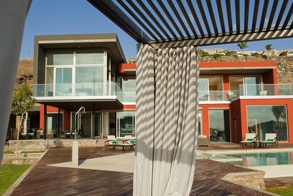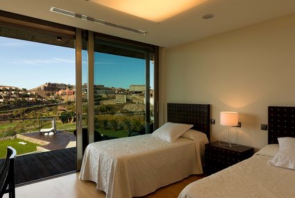 New, large, luxurious villa "La Calma". House Equipment: fitness room, air conditioning, solarium, sauna (private use), washing machine (private use), tumble dryer (private use). Access & Parking: individual garage. All-season motor access to the house. Suitable for wheelchairs. Situation: in the centre of Salobre Golf Resort, on the outskirts of Maspalomas, in the district of Maspalomas, above Salobre, secluded, quiet, elevated, sunny position on a slope, in a residential area. View from the apartment of the sea, the mountains, the garden, the resort and the countryside. Surroundings of the house: grounds (private use, fenced), garden (private use, fenced), lawn (private use, fenced), swimming pool (private use, heated), paddling pool (private use), outside shower (private use), barbecue (private use). Facilities and distances: shop 2 km, grocers 2 km, supermarket 2 km, restaurant 500 m, sandy beach 6 km, golf course 200 m, tennis 4 km. Please note, nearby is a motorway in 1 km, main road in 500 m and ein airport/airfield in 37 km. Swimming pool heating: extra (50€/day, to be requested in the booking and to be paid on spot).Availability