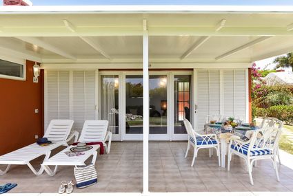 Beautiful, comfortable bungalow "Bungalow Melocotones III". House Equipment: air conditioning, solarium, washing machine (private use). Access & Parking: on the road. All-season motor access to the house. Situation: in the centre of Maspalomas, central, quiet, sunny position. View from the apartment of the garden. Surroundings of the house: swimming pool (shared use), paddling pool (shared use), barbecue (private use).Availability
