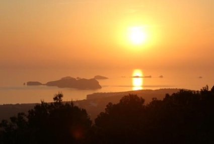 This contemporary villa, designed by a renown Spanish designer, is nestled in a lush pine and eucalyptus forest between Sant Josep and Cala Tarida. With its panoramic outlook, the house is orientated towards the sunset with views to the islands of Conillera and S´Espartar.