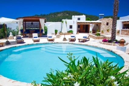 The Villa has 390 m2 and 1.500 m2 of terraces with gardens. The finca boasts 40.000 m2 of land. The finca dates back some 300 years, having been reformed using the same building techniques from the past, using natural elements such as stone and wood (with thick walls and wooden ceilings). In this villa you can enjoy a wide variety of activities without having to move far. A relaxing massage, Ayurveda treatment, yoga classes, if you prefer, a quiet ride through the finca which has a wide range of trails for horse riding, mountain bikingsimply just walking to contemplate the amazing sunset and Es Vedrá views. Description and equipment: 5 double bedrooms (3 suites with double beds and 2 twin rooms) Latex mattresses (160 x 200 and 90 x 200 cm) Air conditioning (hot and cold) Satellite plasma TV in all suites 5 bathrooms Fully equipped kitchen with induction hob, fridge and freezer, Dishwasher, microwave, coffee machine, etc Dining room Sitting room with sofa and chaise longe in L shape, 32" HD Plasma TV, Satellite Astra TV, DVD MP3 player, Pioneer Home Cinema HDMI 5.1, iPod adaptors. ADSL WIFI internet connection Laundry room with washing machine, dryer, iron, etc BBQ with covered outdoor kitchen, equipped with electric hob, dishwasher, fridge Exterior dining and lounge area with fridge, dishwasher. Patio with gardens with stone pond and fountain Balinese pergola chill-out Circular pool with Greek style seating and Hydro-massage Wooden sun lounges and umbrellas Parking covered for 3 cars , 10 cars in the rest of property Chill-out viewpoint with sea views