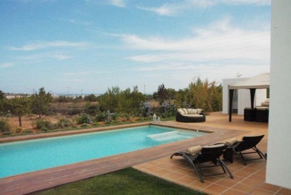 Splendid new house built 2011, close to Ibiza with extensive land and magnificent views over the old city and the sea.