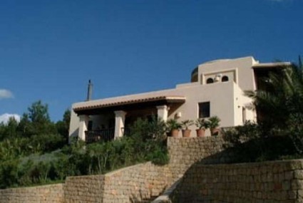 This magnificent house is located at the top of a mountain with impressive views over Ibiza the bay of San Antonio and part of the island of Formentera.