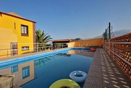Las Norias: Beautiful, comfortable house "La Casona", 3 storeys. Outside the resort, 4 km from the centre of Tazacorte, residential area (villas). For shared use: natural garden 900 m2. Private: property, large garden, swimming pool (10 x 4 m, depth 150 - 200 cm, 01.01.-31.12.). Parking on the premises. Supermarket 4 km, restaurant 200 m, sandy beach "Puerto Naos" 4 km. Tennis 2 km. Groups of teenagers on request only.Availability