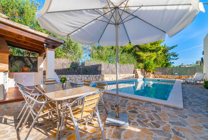 Alcúdia: Large, very beautiful, comfortable villa "Can Jaume", 2 storeys, renovated. In the resort 500 m from the centre of Alcúdia, in a quiet, sunny position residential area (villas), 600 m from the beach. Private: beautiful terraced garden with lawn and wildlife garden, swimming pool angular (8 x 4 m, 01.01.-31.12.). Table tennis, patio, arbour, pergola, garden furniture, barbecue. In the house: internet access, WiFi, storage room for bicycles, air conditioning, washing machine. Parking at the house on the premises. Shop 650 m, grocery 600 m, supermarket 800 m, shopping centre 35 km, restaurant 600 m, bar 500 m, bakery 590 m, pedestrian zone, bicycle rental 600 m, 8 minute walk to the centre, bus stop 1 km, sandy beach 700 m, shingle beach, rocky beach 600 m. Sports harbour 2 km, golf course (18 hole) 5 km, surf school 2 km, riding stable 2.5 km. Please note: suitable for families, suitable for seniors. Object suitable for 6 adults groups of teenagers on request only.