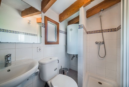 The villa has 4 bedrooms and three bathrooms. The double bedroom has fitted wardrobes and an en-suite shower room. There are also a further three twin bedrooms which share a full bathroom. All bedrooms have air conditioning with timer. Downstairs there is a further bathroom with a large walk-in shower.