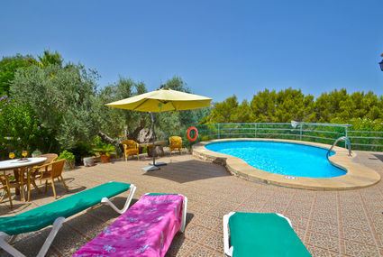 Alcúdia: Cosy, simple, comfortable house "Maria", built in 1990. Outside the resort, in a secluded, sunny, elevated position, 6 km from the sea, in the countryside. Private: property 3'500 m2 (fenced), garden 90 m2, swimming pool (depth 164 - 220 cm, seasonal availability: 20.Mar. - 07.Nov.). Unconventional pool shape. Outdoor shower, terrace (40 m2), barbecue. In the house: internet access, WiFi, washing machine. Parking at the house on the premises. Grocery 5 km, supermarket 5 km, shopping centre 5 km, restaurant 500 m, bus stop 4.8 km, sandy beach 6 km, shingle beach 6 km, rocky beach 6.5 km, indoor swimming pool 5.7 km, swimming bay 6.5 km. Golf course (18 hole) 3.5 km, riding stable 400 m. Nearby attractions: Restaurante típico Comida mallorquina 500 m. Please note: car recommended. Suitable for families, suitable for seniors. Main road 500 m from the property. Nightclub/disco 6.5 km from the property.Availability