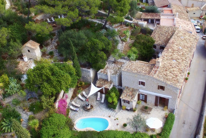 Caimari: Large, very beautiful, rustic house "Santaellas", surrounded by trees. In the resort, 300 m from the centre, in a quiet, sunny position, 20 m from the edge of the forest, 25 km from the sea, 25 km from the beach. Private: large garden with wildlife garden and trees, meadow, swimming pool kidney shaped (6 x 4 m, 01.01.-31.12.). Outdoor shower, patio, garden furniture, barbecue. In the house: WiFi, storage room for bicycles, central heating system, washing machine, tumble dryer. Grocery 200 m, supermarket, restaurant, bar 250 m, bakery 200 m, café, pub garden 250 m, 3 minute walk to the centre, bus stop 600 m, sandy beach 30 km pebble beach 30 km, shingle beach 30 km, rocky beach 30 km. Sports harbour 30 km, marina 30 km, golf course (18 hole) 30 km, surf school 30 km, sailing school 30 km, tennis 2 km, sports centre 4 km, walking paths from the house, cycle lane 500 m. Please note: suitable for families, suitable for seniors. Object suitable for 12 adults groups of teenagers on request only. Loading and unloading of baggage is possible at the holiday house. 1st floor is closed and not occupied.