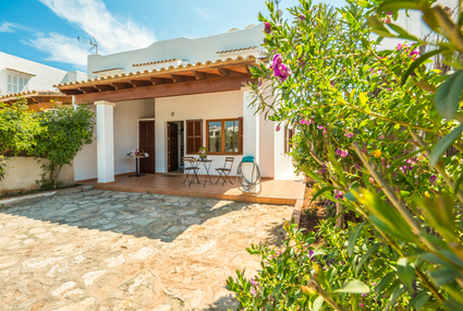 Villa Cubelletes is a two-storey villa that has kept the Ibiza-style, with white walls all around the house.There is a covered terrace at the front and a small terrace at the back with the pool.
