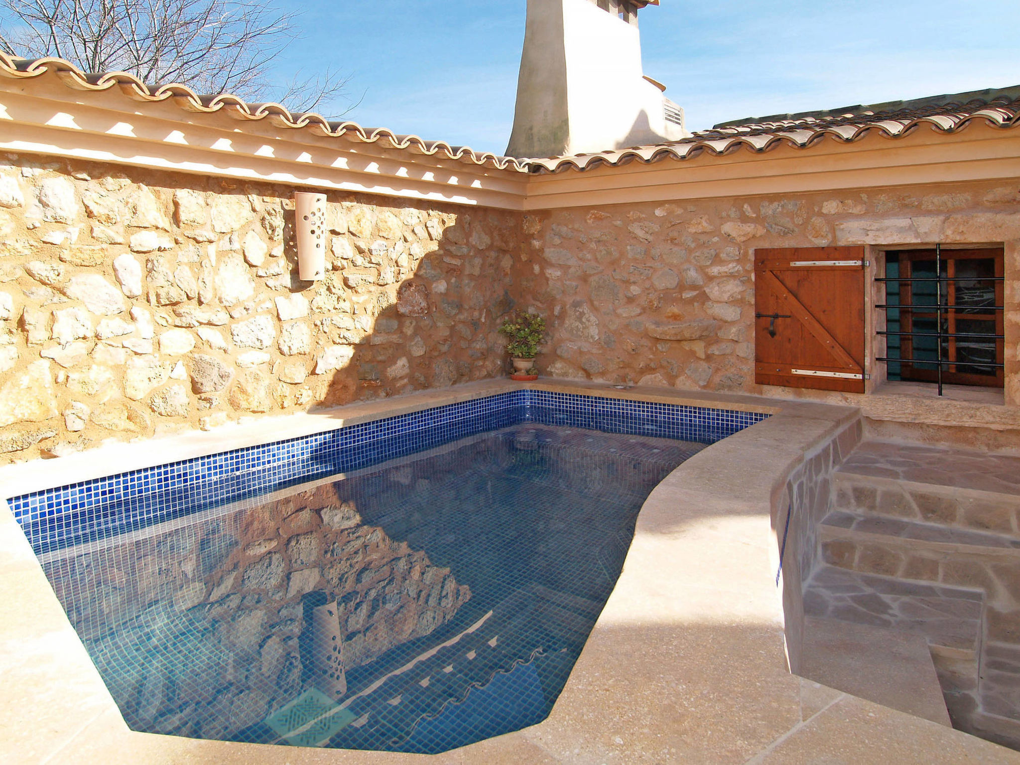 Feature: village house. Please note: Non-smoking house. Situation: in the village S'Horta. Access/parking: parking on the estate. Estate (private use): approx. 150 m², open plot. Outdoor facilities(private use): terrace 25 m², further terrace, furnishing provided, transportable barbecue. Pool (private use): 3.0 x 1.8 m, open throughout the entire season. Pool area: tiled, 4 sun loungers. Please note: access to the pool via stairs (5 steps). Important information: Access to the terrace over 8 steps. ● Distances: Center S'Horta in approx. 200 m. Cala d'Or in approx. 5 km. Campos in approx. 23 km. Next shopping possibility in approx. 200 m. Airport Palma in approx. 56 km. Sea in approx. 4 km. Sandy beach in approx. 4 km (Cala Sanau). Sandy beach in approx. 5 km (Cala d'Or). Golf course Vall d'Or in approx. 3 km.Availability