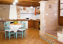 Kitchen: open to the living room (main house/ground floor), fireplace (open), exit to terrace. Kitchen/ cooking equipment: 4 gas rings, oven, microwave oven, dish-washer, combination fridge-freezer, coffee machine.