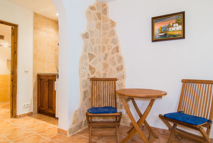 Cal Ratjada: Very large, very cosy farm estate "Son Jaumell", detached, surrounded by trees. On the outskirts, 1.7 km from the centre of Cala de s'Aguila beach, in a quiet, sunny position. Private: natural state property (fenced) with orchard, swimming pool angular (10 x 5 m, 01.12.-31.12.). Outdoor shower, terrace, garden furniture, barbecue. In the house: internet access, WiFi, central heating system, washing machine, tumble dryer. Parking at the house. Grocery 1.5 km, supermarket 1.5 km, shopping centre 1.5 km, restaurant 1.5 km, bakery 1.5 km, café 1.5 km, sandy beach "Cala de s'Aguila" 1 km. Golf course 3 km, tennis 1.5 km, riding stable 1.5 km. Nearby attractions: Cala Agulla 1.7 km, Cala Torta 4.7 km, Golf de Pula 8.7 km, Parque Rancho Grande 19 km. Please note: car recommended. Suitable for families, suitable for seniors. Object suitable for 6 adults groups of teenagers on request only. Loading and unloading of baggage is possible at the holiday house. Part of the house is closed and unoccupied. Main road close by 63 km from the property. Airfield.