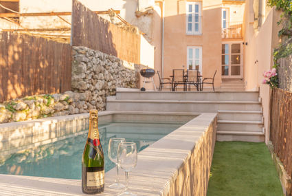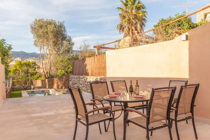 Campanet: Beautiful, simple house "El Mirador", 2 storeys. In the centre of Campanet, in a central position in the residential district, 14 km from the edge of the forest, 18 km from the sea, 18 km from the beach. Private: beautiful garden to relax, courtyard, swimming pool angular (2 x 5 m, 01.01.-31.12.). Patio, garden furniture, barbecue. In the house: internet access, WiFi, air conditioning, washing machine. Grocery 80 m, supermarket 50 m, restaurant 70 m, bar 50 m, bakery 30 m, café 50 m, pedestrian zone 10 m, pub garden 50 m, sandy beach "Puerto de Alcudia" 18 km pebble beach "Aucanada" 20 km. Sports harbour 20 km, marina 20 km, golf course (18 hole) 21 km. Nearby attractions: SeS Fonts Ufanes 4 km, S'Ermita de Sant Miquel 3.7 km, Coves de Campanet 5 km. Please note: car recommended. Suitable for families, suitable for seniors baby equipment on request (included). Object suitable for 6 adults groups of teenagers on request only. Airfield 32 km from the property.