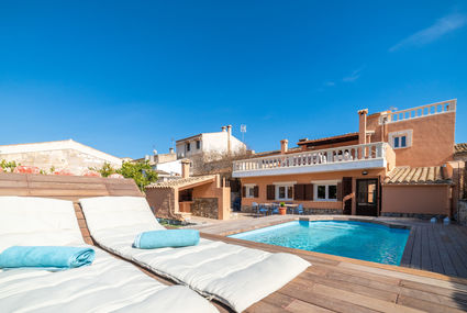 Campanet: Very large, very comfortable house "Serenity", 2 storeys, built in 1950, renovated in 2021. In the resort, 800 m from the centre, in a quiet, sunny position residential area (villas), 1.5 km from the edge of the forest, 17 km from the sea. Private: beautiful garden with lawn and wildlife garden, swimming pool angular (7 x 3 m, depth 50 - 160 cm, 01.01.-31.12.). Outdoor shower, table tennis, patio, arbour, pergola, garden furniture, barbecue, barbecue house, planted inner courtyard pool maintenance by the owner/gardener. In the house: internet access, WiFi, fitness room, table tennis, storage room for bicycles, sun terrace, air conditioning, washing machine. Parking at the house on the premises. Grocery 800 m, supermarket 500 m, restaurant, bar 850 m, bakery 780 m, pedestrian zone 800 m, bicycle rental 2 km, 10 minute walk to the centre, bus stop "Plaza de Campanet" 800 m, ferry "Port Alcúdia" 19 km, sandy beach "Port Alcúdia" 17.5 km. Sports harbour 18 km, marina 18 km, golf course 13 km, tennis 1 km, sports centre 1 km, walking paths from the house, cycle lane 500 m. Nearby attractions: Campanet, Moscari, Selva, Caimari, Búger, Monasterio de Lluc, Pollença, Port de Pollença, Campanet Local Market Tuesday 9-14h. Serra de Tramuntana. Hiking paths: Camino Viejo Pollença - Lluc, Puig de Santa Magdalena, Inca. Please note: car recommended, no lift. Object suitable for 10 adults. On request: airport transfer to the holiday accommodation. The owner does not accept any youth groups. Animals in the neighbourhood. Airfield 42 km from the property. Neighbourhood highly sensitive to noise. Quietness and good behaviour expected.Availability