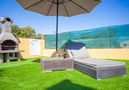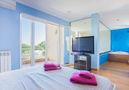 Object suitable for 8 adults. Spacious and bright, fully renovated, modern and cosy furnishings: large living/dining room with sliding door, panoramic window with dining table, satellite TV, digital TV and flat screen. Exit to the patio. 1 large double bedroom with panoramic window with 1 french bed (150 cm, length 200 cm). Kitchen-/living room (oven, dishwasher, 3 ceramic glass hob hotplates, microwave, freezer, electric coffee machine) with dining table. Exit to the patio, to the swimming pool. Shower/WC. Upper floor: 1 large double bedroom with sliding door, panoramic window with 1 french bed (150 cm, length 200 cm), bath/shower/WC, hydro massage bath, TV, flat screen, air conditioning and forced-air heating. Exit to the balcony. 1 double bedroom with panoramic window with 1 french bed (150 cm, length 200 cm), TV and flat screen. 1 double bedroom with panoramic window with 1 french bed (150 cm, length 200 cm), TV and flat screen. Bath/WC. Large patio, lawn, porch. Terrace furniture, balcony furniture, barbecue, deck chairs. View of the sea, the mountains and the resort. Facilities: washing machine, safe, iron, children's high chair, baby cot, hair dryer. Internet (WiFi, free). Reserved parking. Please note: suitable for families. Non-smoking house. ETV2525