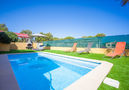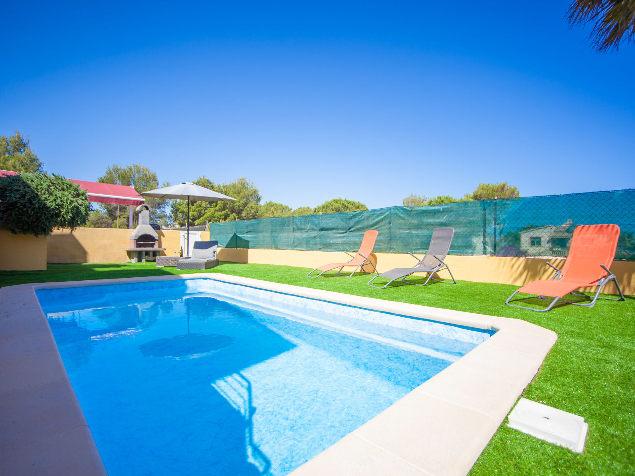 Colonia de Sant Pere: Very large, cosy, comfortable villa "Jada", 2 storeys. In the resort, 500 m from the centre, in a quiet, sunny position residential area (villas), 2 km from the edge of the forest, 450 m from the sea. Private: beautiful, well-kept garden with lawn and wildlife garden, swimming pool angular (6 x 4 m, seasonal availability: 01.Jan.-31.Dec.). Patio, arbour, pergola, garden furniture, barbecue. In the house: internet access, WiFi, storage room for bicycles, central heating system, air conditioning, washing machine. Parking at the house on the premises. Supermarket 1.1 km, shopping centre 58 km, restaurant 600 m, bar 500 m, 5 minute walk to the centre, sandy beach "Sa Canova Playa Virgen" 2.0 km, rocky beach "Colonia St. Pere", swimming bay 450 m. Sports harbour 500 m, golf course 31 km, walking paths from the house, cycle lane 500 m. Nearby attractions: Son Serra de Marina/Betlem/Cala Ratjada, Ermita de Bonany / Santuario. Hiking paths: Finca Son Real. Farrutx, Península del Llevant. Please note: suitable for families, suitable for seniors. Object suitable for 8 adults groups of teenagers on request only. Airfield 70 km from the property.Availability