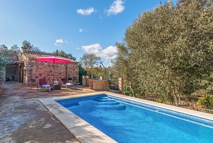 Costitx: Beautiful, cosy, rustic farm estate "Es Gorg", surrounded by trees and fields. Outside the resort Costitx, in a quiet, sunny position, 27 km from the sea, 27 km from the beach, in the countryside. Private: natural state property (fenced), flowers and trees, lawn for sunbathing, beautiful garden to relax, swimming pool angular (4 x 8 m, depth 100 - 200 cm, seasonal availability: 01.Jan. - 31.Dec.) with salt water. Outdoor shower, patio, pergola, garden furniture, barbecue. In the house: internet access, WiFi, central heating system, air conditioning, washing machine. Parking at the house on the premises. Shop 2.5 km, grocery 2.5 km, supermarket 8 km, restaurant 8 km, bar 2.5 km, bakery 2.5 km, café 2.5 km, internet café 8 km, bicycle rental 9 km, pub garden 2.5 km, sandy beach "Ca'n Picafort" 27 km. Sports harbour 35 km, marina 35 km, golf course (18 hole) 38 km. Nearby attractions: Finca Son Bordils (Vineyards) 7 km, Mallorca Planetarium 3 km, Museo de Ciencia Natural 2.3 km. Please note: car recommended. Suitable for seniors baby equipment on request (included). Object suitable for 2 adults. Loading and unloading of baggage is possible at the holiday house. Airfield 30 km from the property.Availability