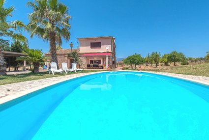 Rustic, comfortable single-family house "Casa Rayo". Outside the resort, 2.5 km from the centre of Inca, in a quiet, sunny position, in the countryside. Private: garden with lawn, swimming pool (8 x 4 m, 01.04. and 31.10.). Outdoor shower, table tennis, garden furniture, barbecue. In the house: WiFi, central heating system, air conditioning, washing machine. Parking at the house. Supermarket 2 km, shopping centre 2.5 km, restaurant 2.5 km, railway station "Inca" 4 km, sandy beach "Alcudia" 25 km.Availability