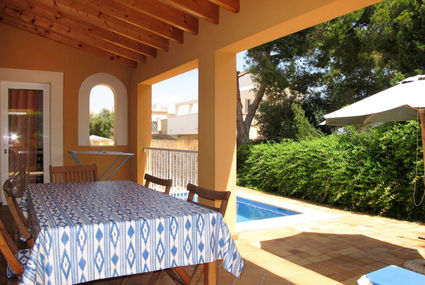 Single-family house "Tulipan". 5 km from the centre of Es Llombards, 6 km from the centre of Santanyi, 20 km from the centre of Campos, in the residential district, 400 m from the sea. Private: property 300 m2 (fenced), swimming pool (4 x 2 m, 01.01.-31.12.). Outdoor shower, public parking on the road. Shop 350 m, supermarket 6 km, sandy beach "Cala Llombards" 600 m. Please note: car recommended.Availability