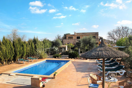 Situation: rural. Access/parking: parking on the estate. Estate (private use): approx. 5000 m², closed plot (fence), natural surroundings, with plants, gravel, flagged floor, olive trees, palm trees. Outdoor facilities(private use): terrace 50 m² (partially roofed), further terrace 50 m², furnishing provided, brick barbecue. Pool (private use): 7.0 x 4.0 m, open throughout the entire season. Pool area: tiled, 6 sun loungers, sunshade, external shower. Important information: Please note: in January the lawn will be replaced by a terrace. ● Distances: Center Es Llombards in approx. 1 km Santanyi in approx. 8 km Palma in approx. 56 km, Next shopping possibility (Santanyi) in approx. 8 km, Airport Palma in approx. 48 km, Sea in approx. 4 km Sandy beach in approx. 4 km (Cala S'Almonia).Availability