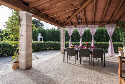 Lloseta 2 km from Inca: Very beautiful, cosy, rustic farm estate "Casa Ana", surrounded by trees. Outside the resort, in a sunny position. Private: property (fenced), beautiful garden to relax, swimming pool angular (9 x 4 m, 01.05. and 31.10.). Shower/WC in the pool area, outdoor shower, patio, pergola, garden furniture, barbecue. In the house: internet access, WiFi, air conditioning, washing machine. Parking at the house on the premises. Shop 2 km, supermarket 2 km, shopping centre 2 km, restaurant 2 km, bakery 1.5 km, pub garden 1.7 km, railway station "Inca" 2 km, sandy beach "Alcudia" 25 km. Nearby attractions: Restaurante Santi Taura 1.2 km, Restaurante Tomeu Lassio 1.7 km, Restaurante Can Carrossa. Hiking paths: Tossals Verds 12 km, Biniamar 3 km. Please note: car recommended. Suitable for families, suitable for seniors baby equipment (included). Object suitable for 7 adults groups of teenagers on request only. Loading and unloading of baggage is possible at the holiday house.