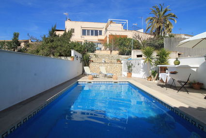 Lloseta: Very beautiful, comfortable house "Son Ramon", 2 storeys. In the resort 900 m from the centre of Lloseta, in a quiet, sunny position, 2 km from the edge of the forest, 28 km from the sea, 28 km from the beach. Private: swimming pool angular (7 x 4 m, 01.01.-31.12.). Terrace, garden furniture. In the house: internet access, WiFi, air conditioning, washing machine, tumble dryer. Single garage. Shop, grocery, supermarket, restaurant, bar, bakery, café, internet café, pedestrian zone 600 m, bicycle rental 2 km, pub garden 600 m, 11 minute walk to the centre, bus stop 500 m, railway station 600 m, sandy beach 28 km, rocky beach 28 km. Sports harbour 28 km, marina 28 km, golf course (18 hole) 30 km. Nearby attractions: Puig dels Tossals Verds, Ermita de la Mare de Déu del Cocó, Restaurante Santi Taura, Restaurant Tomeu Lassio, Posessió de Son Ramon. Please note: suitable for families, suitable for seniors. Object suitable for 8 adults groups of teenagers on request only. Loading and unloading of baggage is possible at the holiday house. Airfield 45 km from the property.Availability