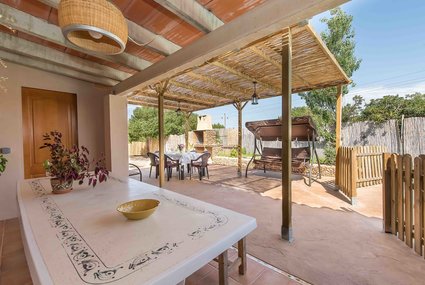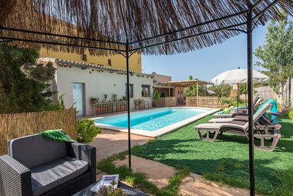 Portocristo: Rustic, comfortable villa "Es Xipres", 2 storeys, renovated in 2015, surrounded by trees. Outside the resort, 1 km from the centre, in a quiet, sunny position, 1.5 km from the sea, 1.5 km from the beach, in the countryside. Private: property (fenced), large garden with lawn, swimming pool angular (9 x 4 m, seasonal availability: 01.May. - 01.Nov.). WC in the pool area, outdoor shower, patio, pergola, garden furniture, barbecue. In the house: WiFi, washing machine. Motor access (via unmade road). Parking. Shop 1.5 km, grocery 1.5 km, supermarket 1.5 km, shopping centre 1.5 km, restaurant 1.5 km, bar 1.5 km, bakery 1.5 km, café 1.5 km, internet café 1.5 km, pedestrian zone 1.5 km, bicycle rental 1.5 km, pub garden 1.5 km, bus stop 1.5 km, sandy beach 1.5 km pebble beach 1.5 km, shingle beach 1.5 km, rocky beach 1.5 km, outdoor swimming pool 1.5 km. Sports harbour 1.5 km, marina 1.5 km, golf course 14 km, sailing school 1.5 km, tennis 1.5 km, riding stable 1.5 km, children's playground 1.5 km. Object suitable for 9 adults groups of teenagers on request only. Please note: Loading and unloading of baggage is possible at the holiday house. Main road close by.Availability
