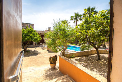 María de la Salut: Very large, rustic house "Sa Verdera", 2 storeys. In the resort, 200 m from the centre, in a sunny position, excellent location: right in the centre but still quiet, 15 km from the sea, 15 km from the beach. Private: garden with trees, swimming pool angular (9 x 5 m, seasonal availability: 01.Jan. - 31.Dec.). Shower/WC in the pool area, outdoor shower, patio, arbour, pergola, garden furniture, barbecue. In the house: internet access, WiFi, storage room for bicycles, air conditioning, washing machine. Public parking on the road. Supermarket 500 m, restaurant 220 m, bar 200 m, bakery 320 m, 3 minute walk to the centre, bus stop 400 m, sandy beach 15 km, rocky beach 17 km. Sports harbour 16 km, golf course (18 hole) 28 km, sports centre 700 m. Nearby attractions: Rancho Grande 19 km, Parque Natural de s'Albufera 16 km. Please note: suitable for families, suitable for seniors. Object suitable for 10 adults groups of teenagers on request only. Loading and unloading of baggage is possible at the holiday house. Airfield 43 km from the property.Availability