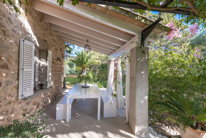 Camí de Ternelles 1 km from Pollença: Very modern, beautiful, comfortable farm estate "Romantica Ternelles", 2 storeys, surrounded by trees. Outside the resort, 1.5 km from the centre of Pollença, in a quiet, sunny position, 1 km from the edge of the forest, 6.8 km from the sea, 6.9 km from the beach, in the countryside. Private: large, well-kept garden with lawn and trees, pond. Outdoor shower, patio, pergola, garden furniture, barbecue. In the house: internet access, WiFi, air conditioning, washing machine. Parking at the house. Supermarket 1.5 km, restaurant 1.5 km, bar 1.5 km, bicycle rental 1.5 km, 15 minute walk to the centre, bus stop 1.5 km, sandy beach 6.8 km, rocky beach 6.8 km. Sports harbour 6.8 km, golf course (18 hole) 5 km, sailing school 6.8 km, tennis 2 km, walking paths from the house 1 km, cycle lane 1 km. Nearby attractions: Cala Sant Viçenc 6.8 km, El Calvari, Puig 1.5 km, Puig de Maria 2.5 km, Port de Pollença 6.8 km. Please note: suitable for seniors, not suitable for small children. Object suitable for 4 adults groups of teenagers on request only. Loading and unloading of baggage is possible at the holiday house. Part of the house is closed and unoccupied.Availability