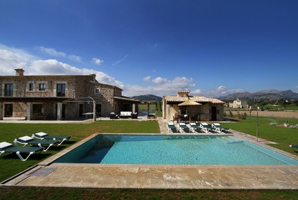 Set amidst glorious open countryside with far reaching views towards Puerto Pollença and distant mountain ranges this magnificent newly built stone clad property is simply one of the most extravagant in Pollença. Set in 21,000m² of land with mature palm trees, gardens and spacious lawns. Wrought iron gates open into the gravel drive.
