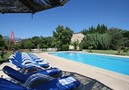 Bordering the main road that goes from Pollensa to Lluc, villa Mas is reached via a private graveled drive leading to the veranda. You enter this bright and spacious villa in the main hall leading into the living room with Satellite TV, DVD player, comfy seating area and further to the dining room with banquet table for twelve persons. The fitted kitchen is well equipped with dishwasher, microwave, washing machine, electric oven/ceramic hob, fridge/freezer, twin sink unit and eye-level cupboards. Completing the ground floor accommodation is one double bedroom with full en-suite bath/shower room. One full separate bathroom is downstairs. The wrought iron spiral staircase leads up to the galleried landing area. The beautiful master double bedroom has a separate marble bath/shower room with corner bath and French doors opening to the upper sun terrace with mountain views. Three attractive twin bedrooms share one elegant bath/shower rooms. All rooms have air conditioning. The tiled swimming pool is set to the front of the villa and has spacious sun terraces with comfortable sun loungers where you can soak up the sun whilst watching the children splashing around in the mosaic tiled swimming pool with corner steps. In a quiet corner of the garden in a covered terrace off the driveway is the brick built BBQ and patio dining area with seating for fourteen people.
