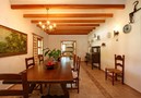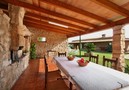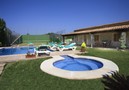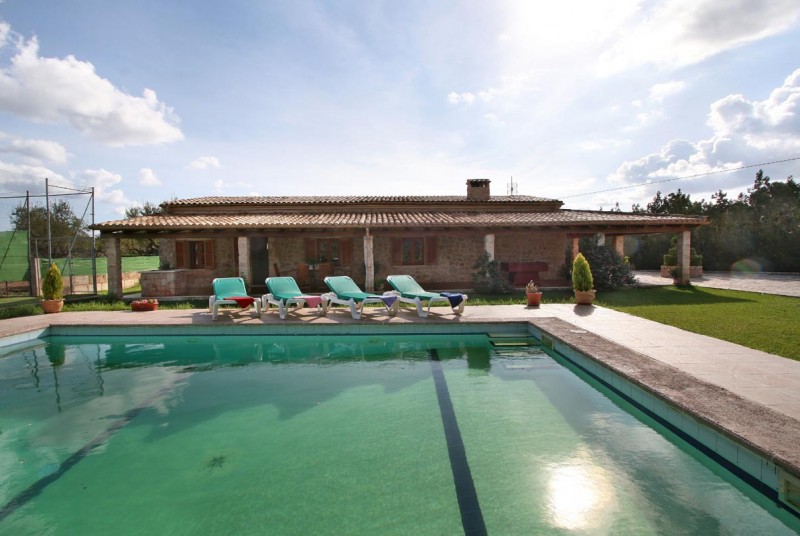 Set off a quiet country lane in the heart of Pollenca´s beautiful countryside, this very attractive stone clad villa is ideal for tennis enthusiasts to enjoy the benefit of your own private tennis court. All the very comfortably furnished accommodation is on one floor, with cooling terracotta tiles, beamed ceilings, many interesting artefacts. A covered porch leads to the main entrance. On entering a large living/dining room with Satellite TV, DVD player, comfortable sofas, feature fireplace and French doors opening to the garden terrace are welcoming us. There is also a fully fitted modern kitchen with dishwasher, microwave, fridge/freezer, electric oven/infra-red hob and walk-in pantry. The bedroom area comprises of one double and two twins sharing two further bathrooms. All bedrooms have air conditioning units and fitted wardrobes. The private tennis court is set at one corner of the well maintained garden with a good sized lawn area. The swimming pool is surrounded with comfortably furnished sun terraces. The excellent BBQ part has a bread oven and washing facilities. This villa we can highly recommend for a family holiday.