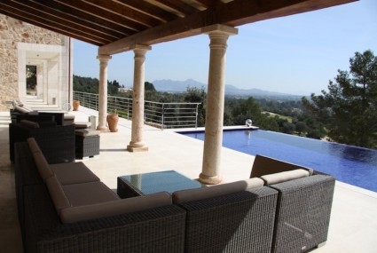 Spectacular ,newly built designer luxury villa close to Pollensa. This impressive property is unique due to the excellent standard and exquisite touches to the property. The villa offers all modern comforts to satisfy even the most demanding of guests. It has been carefully decorated in an exquisite modern style with open spaces and warm colours and all commodities amongst which there is under floor heating, marble and wooden floors. It offers fantastic views of the Tramuntana mountains and the surrounding green valley. Sit and enjoy the stillness and beauty in a unique setting with an exceptional feel to it. Bedrooms: 2 twins and 4 doubles Bathrooms: 1 cloak room, 2 full and 4 shower rooms Layout : Upper floor: spacious entrance hall, 3 double bedrooms, 2 twin bedrooms all with either en suite shower room or full en suite bathroom. Lower floor: large open plan living/dining room with French doors leading out to a large terrace with breathtaking views of the surrounding golf course and direct access to the large infinity pool. Impressive, modern and fully equipped kitchen (glass ceramic, fridge, oven, microwave, built-in coffee machine, wine fridge, etc) . Laundry room. Double bedroom with en suite shower room Recommended for Families with teenagers Romantic getaway golf players