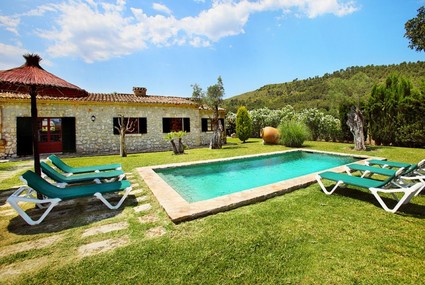 Set in open countryside in a quiet and peaceful location, Segue is surrounded by well maintained mature and colourful gardens affording distant views to the mountains. Within a short drive is the beautiful bay of Puerto Pollenca with golden sandy beaches and many excellent restaurants and tapas bars. Accommodation This stone clad superior villa has been built with the intention of offering one of Pollenca`s finest country family homes and once you have visited we are sure you will more than agree. Designed by one of Mallorca`s leading architects and interior designer this beautiful home offers: On entering is the hallway with a beautiful feature cobblestone floor with an impressive stone archway opening into the spacious open plan living/dining room with interior stone wall features, comfy seating area with three piece suite, Wifi internet connection, Satellite TV, DVD player, feature fireplace and French doors opening to the garden terraces and breakfast patio. The very modern fitted kitchen has all modern requirements including dishwasher, microwave, electric oven with infra red hob, above average size fridge/freezer and for wine lovers, a handy rack. The maids room houses the washing machine. Superbly furnished the fascinating master double bedroom has romantic feature bedside table lamps, fully fitted wardrobes and luxury en-suite bath/shower room with Romanesque tiles and ladies aspect mirror. Two exquisitely furnished twin bedrooms have fitted wardrobes, relaxing, feature lighting and share an adjacent and very impressive full bath/shower room. Hairdryers in each bathroom. Safety deposit box and coded entry key box. Complimentary air conditioning is in all bedrooms. Central heating is included for early and late season lets. Surroundings Surrounding the impressive 8.00m eco-friendly swimming pool are large lawns providing ample space for children to play whilst (hopefully) Mum and Dad can relax on the sun-loungers adorning the spacious sun terraces. A beach style parasol provides welcome shade from the summer sun. The BBQ casita has a covered dining terrace overlooking the pool and gardens. Here you can enjoy BBQ`S in a totally relaxed and quiet atmosphere amidst the floodlit colourful and scented gardens – including the infamous "Daman de Noches". Table tennis is also provided.