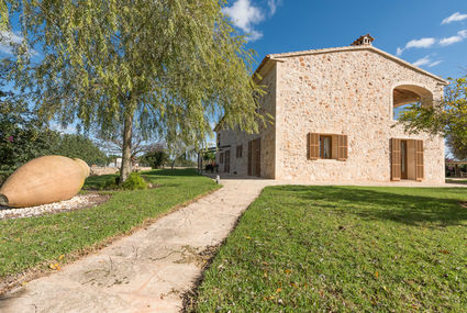 2 km from Porreres: In case of exceeding 200 kw per reservation (3 to 7 nights) will be charged 0.25 € KW exceeded. The recycling norms set by the city council must be respected in order to avoid sanctions. Very large, beautiful, comfortable farm estate "Porreres", 2 storeys, surrounded by trees and fields. Outside the resort, in a quiet, sunny position, 3 km from the edge of the forest, 26 km from the sea, 27 km from the beach, in the countryside. Private: natural state property, large garden with lawn and wildlife garden, orchard, swimming pool angular (depth 190 cm, 01.01.-31.12.). Outdoor shower, whirlpool, patio, arbour, pergola, garden furniture, barbecue. In the house: internet access, WiFi, storage room for bicycles, central heating system, air conditioning, washing machine, tumble dryer. Parking at the house, single garage. Supermarket 2.5 km, restaurant 3 km, bar 3 km, bakery 2.7 km, 25 minute walk to the centre, sandy beach 27 km, rocky beach 28 km. Sports harbour 29 km, golf course 20 km, tennis 3.5 km. Please note: car recommended. Suitable for families, suitable for seniors. Object suitable for 10 adults + 2 children groups of teenagers on request only. Loading and unloading of baggage is possible at the holiday house. Animals in the neighbourhood. Airfield 39 km from the property.