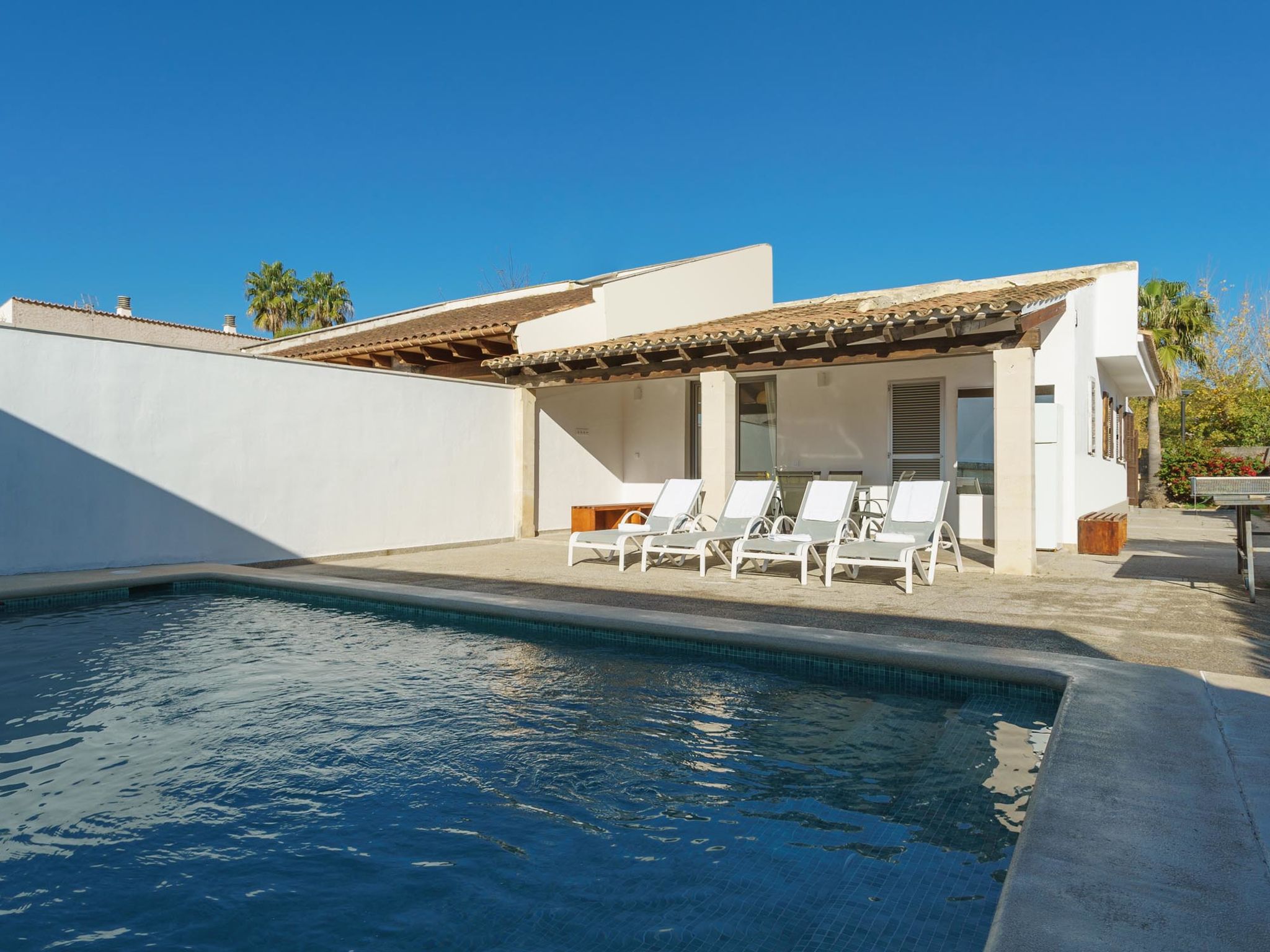 Port d'Alcúdia: Very modern, cosy single-family house "Blanca", renovated. In the resort, 1.5 km from the centre, in a quiet, sunny position residential area (villas), 2 km from the edge of the forest, 700 m from the beach. Private: property (fenced) with wildlife garden, swimming pool angular (7 x 4 m, depth 100 - 180 cm, 01.01.-31.12.). Outdoor shower, table tennis, patio, arbour, pergola, garden furniture, barbecue. In the house: internet access, WiFi, air conditioning, washing machine. Parking at the house on the premises. Shop 800 m, grocery 500 m, supermarket 900 m, restaurant, bar 500 m, bakery 900 m, bicycle rental, pub garden 500 m, 15 minute walk to the centre, bus stop 500 m, sandy beach 700 m, rocky beach 2.5 km. Sports harbour 1.9 km, marina 1.9 km, golf course (18 hole) 4 km. Please note: suitable for families, suitable for seniors. Object suitable for 6 adults. Loading and unloading of baggage is possible at the holiday house. Airfield 55 km from the property.