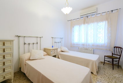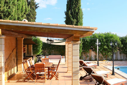 Large, cosy farm estate "Sa Pobla", built in 1975, renovated in 2008, surrounded by fields. On the outskirts, 1.7 km from the centre of Sa Pobla, in a sunny position, 8 km from the sea, 8 km from the beach, in the countryside. Private: natural state property, garden with wildlife garden, swimming pool angular (8 x 4 m, depth 100 - 170 cm, 01.01.-31.12.) with internal staircase. Outdoor shower, patio, arbour, pergola, garden furniture, barbecue. In the house: WiFi, central heating system, washing machine (extra). Motor access (via unmade road, ramp). Stepped path (3 steps) to the house. Parking (for 6 cars) at the house on the premises. Shop, grocery 500 m, supermarket 700 m, restaurant 1.5 km, bar 1 km, internet café 1 km, railway station "Sa Pobla" 2 km, sandy beach 8 km, rocky beach 11 km. Sports harbour 13 km, marina 13 km, golf course (18 hole) 8 km, tennis 1.5 km, riding stable 8 km. Please note: car recommended. Suitable for families, suitable for seniors. Object suitable for 8 adults groups of teenagers on request only. Loading and unloading of baggage is possible at the holiday house. Airfield 49 km from the property.
